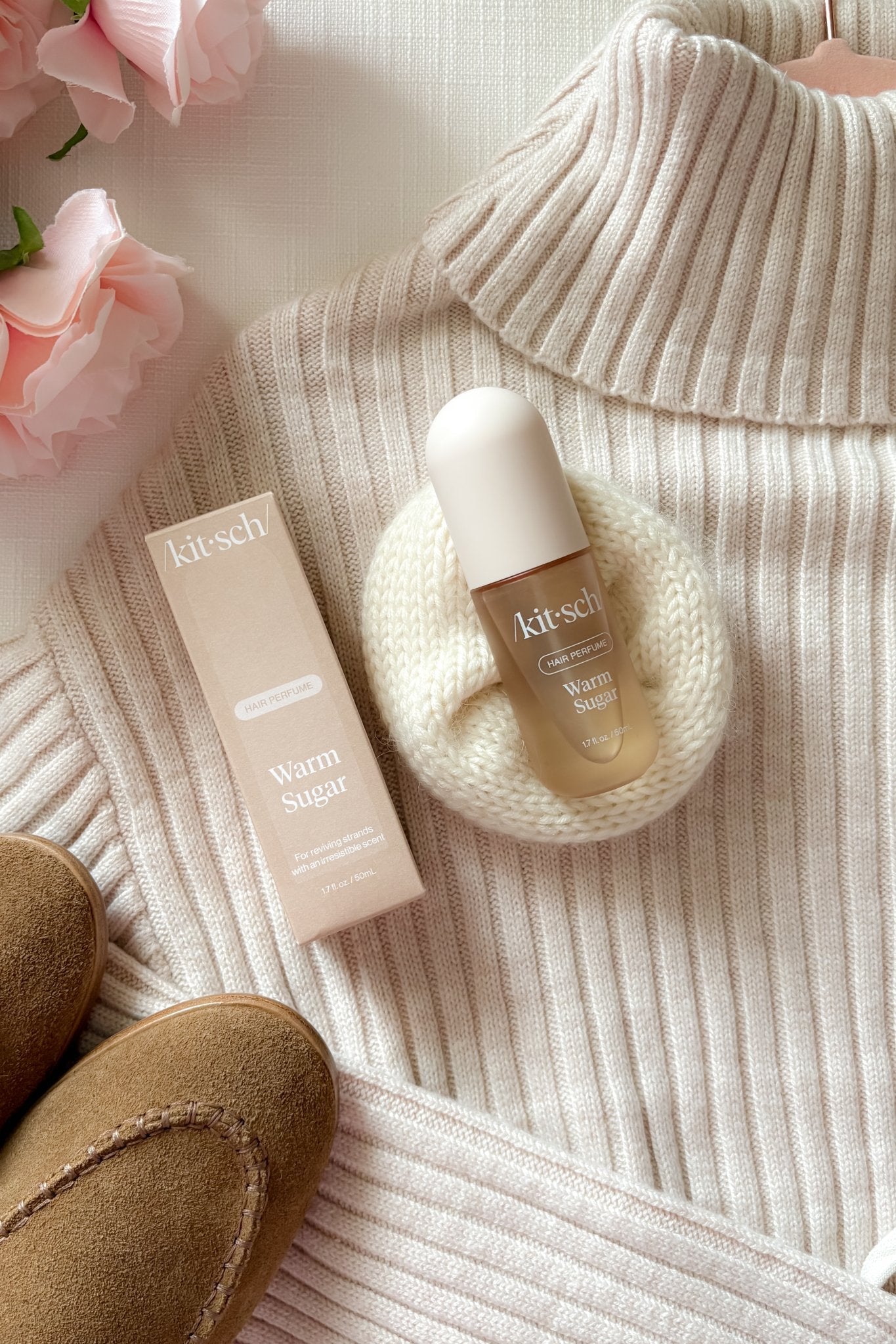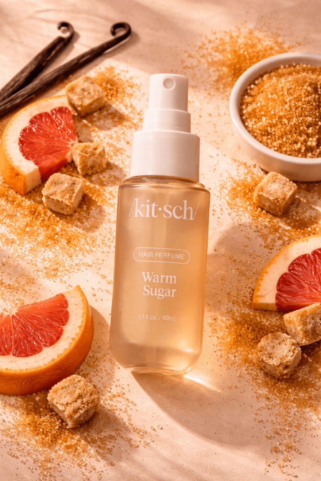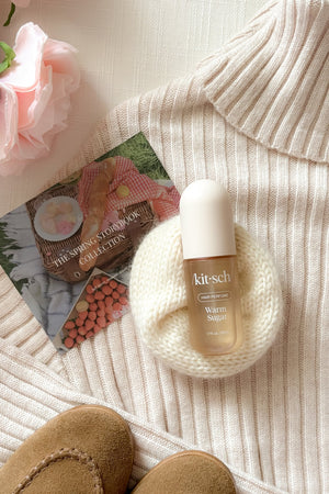 Kitsch Warm Sugar Hair Perfume is a sweet, warm fragrance designed to refresh hair between washes while leaving behind a soft, decadent scent.