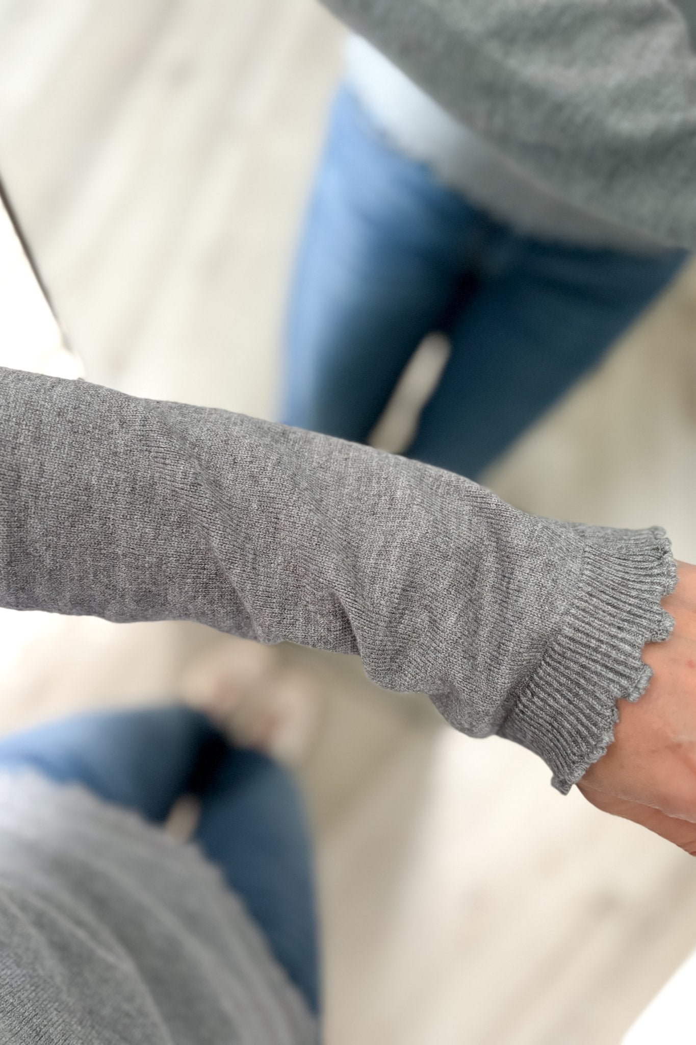 The heather gray shade keeps it timeless and easy to style with denim, trousers, or layered jewelry for a soft feminine look. If you love pieces that feel practical yet pretty, this one checks every box.