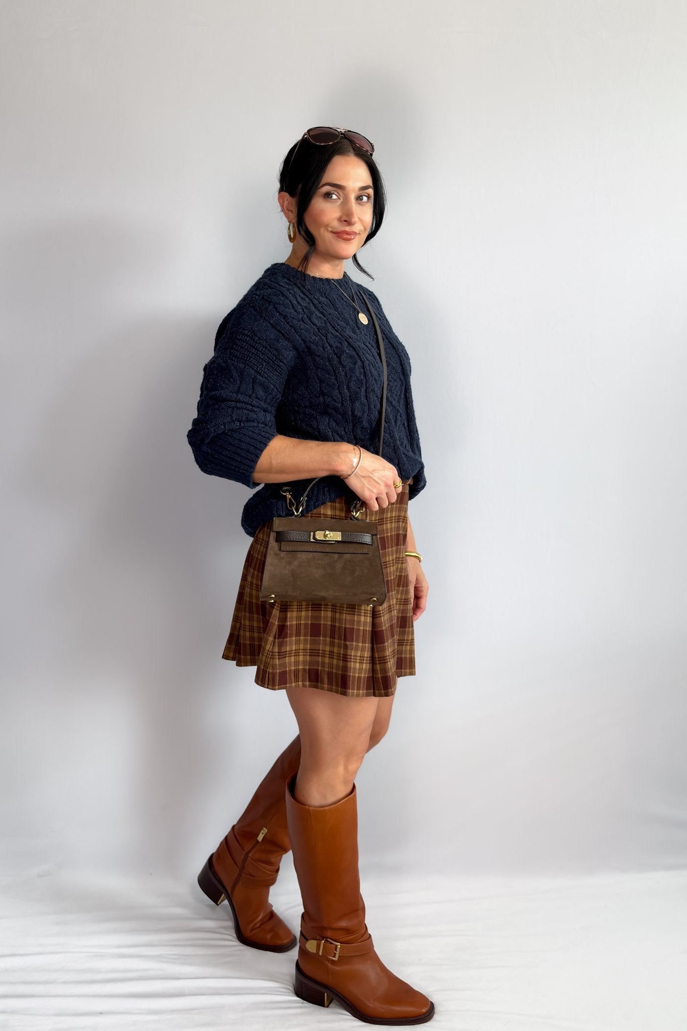 Crafted from a soft yet structured woven fabric, it’s perfect for pairing with cozy sweaters, crisp button-downs, or blazers. The mini length makes it versatile enough to style with knee-high boots, loafers, or sneakers for endless outfit combinations. Whether you’re leaning into classic preppy style or simply want a chic plaid skirt for everyday wear, this pleated mini is a must-have.