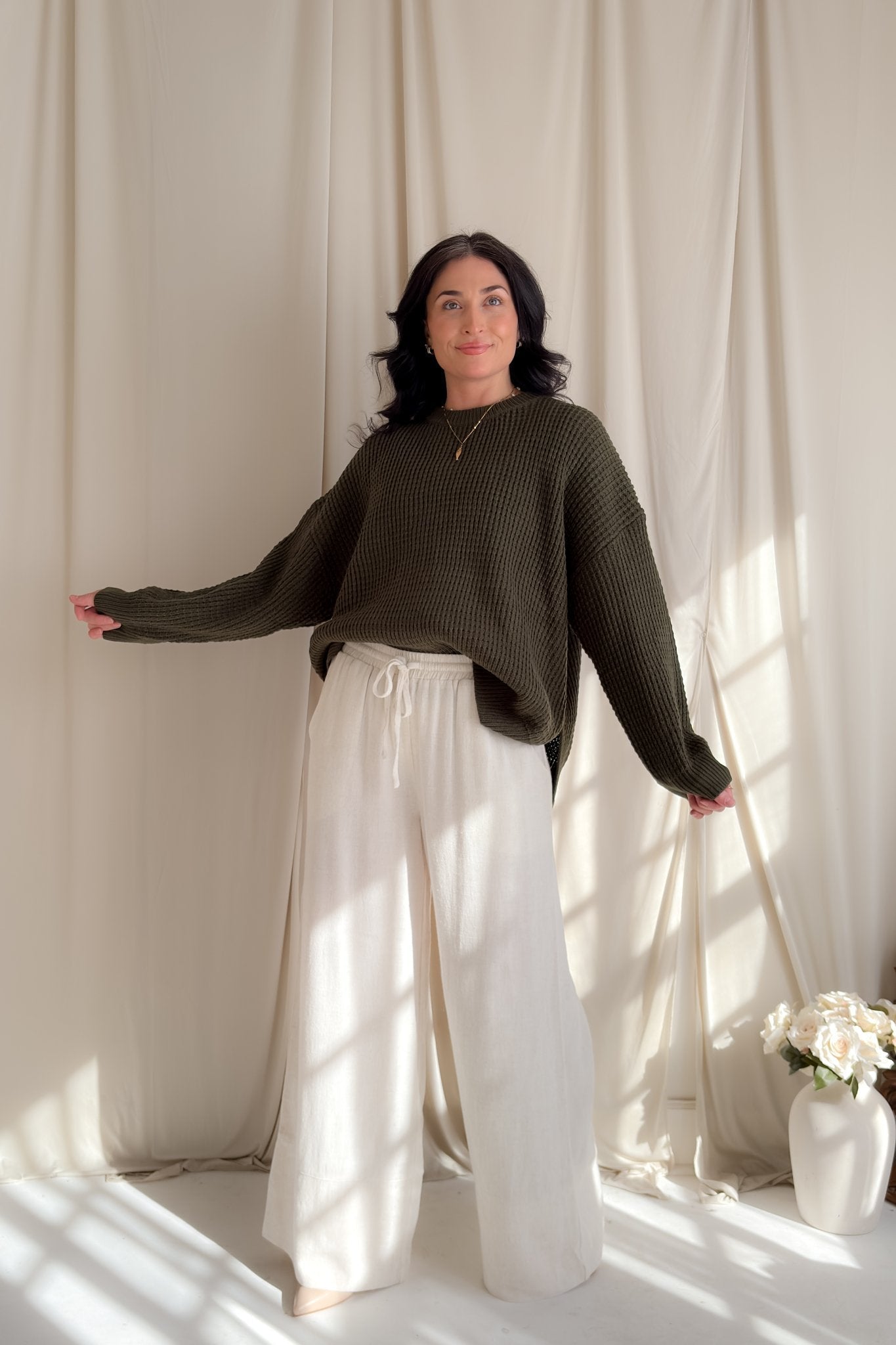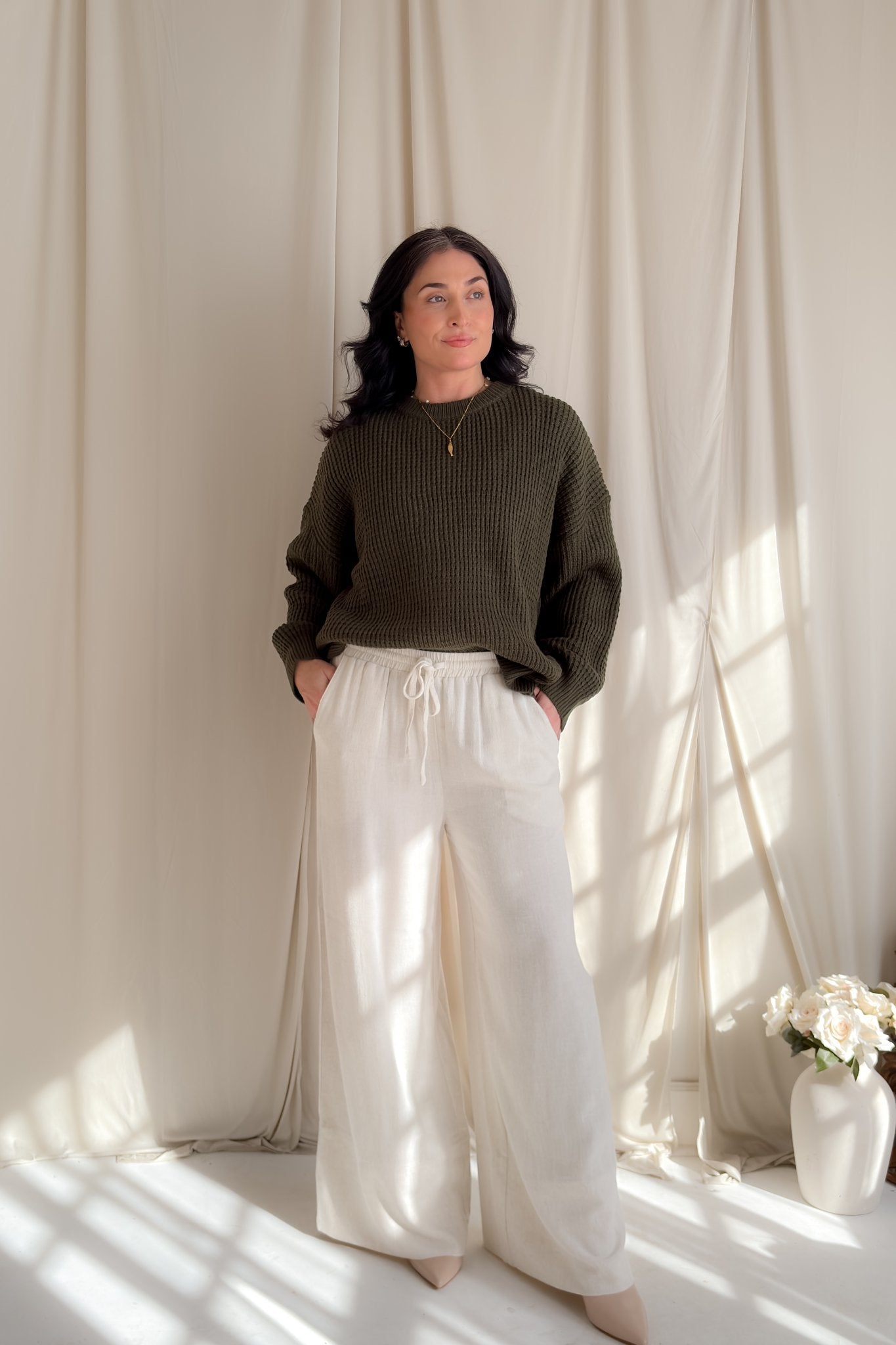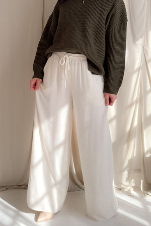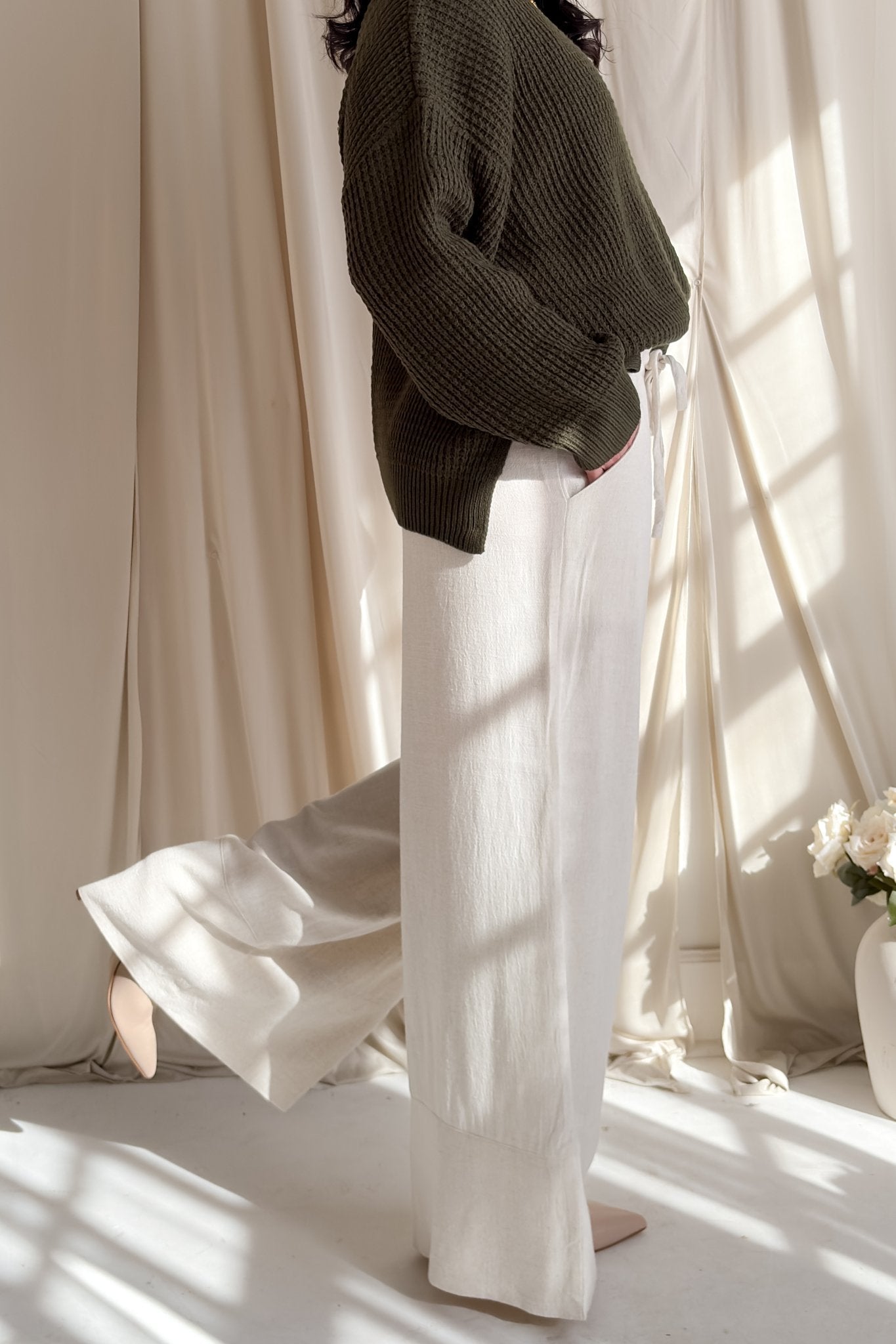 The Ivory Linen Blend Wide Leg Drawstring Pants are the kind of effortless staple you’ll reach for again and again. Crafted from a lightweight linen blend, these pants feel airy and breathable while still offering beautiful drape and movement. Finished in a warm oatmeal ivory tone, they’re an easy neutral that pairs seamlessly with just about everything in your closet.