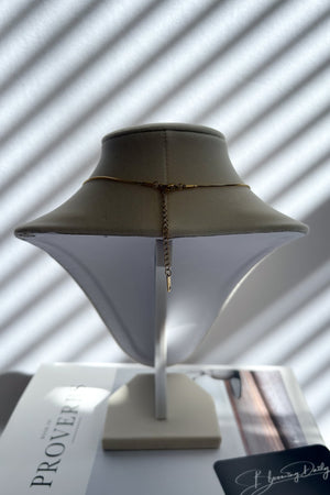 The 18K Gold Plated Non-Tarnish Curved Bar Necklace is 16" with a 2" adjustable chain.