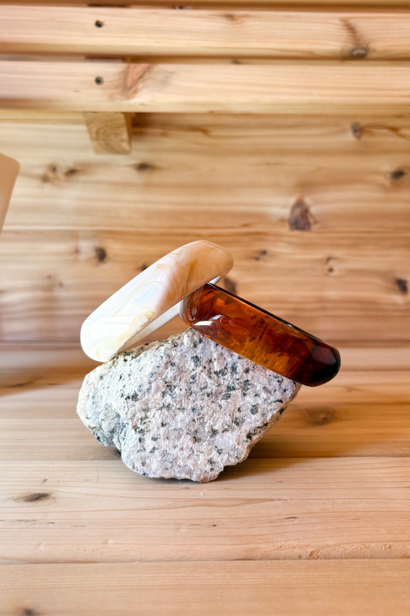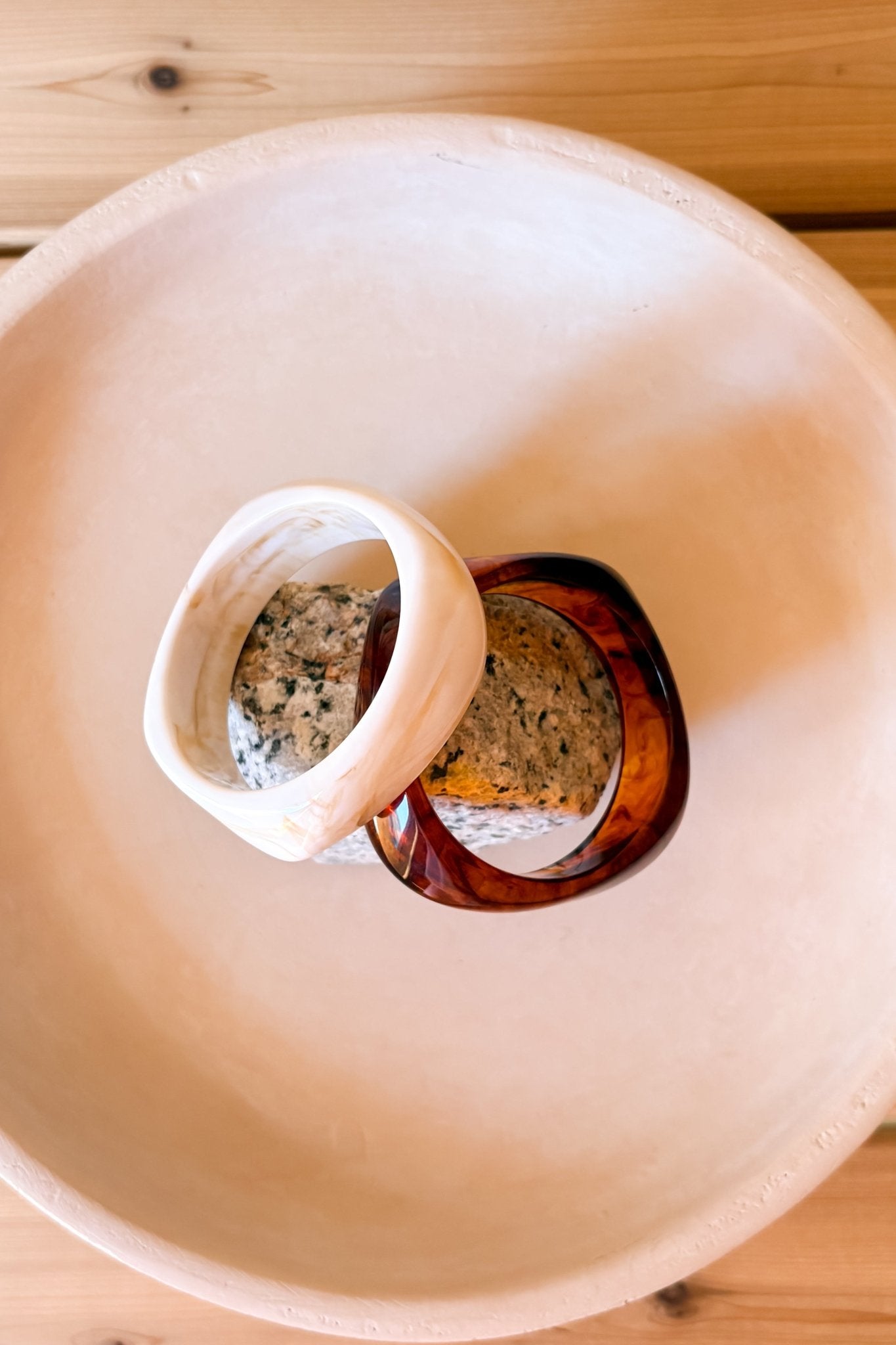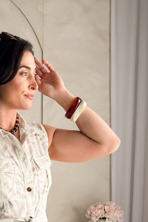 The soft ivory feels feminine and refined, while the tortoise brings a rich, classic contrast—perfect for pairing together or wearing solo. Whether you’re styling a casual outfit, a feminine summer look, or adding the finishing touch to a dress, these bangles make it feel intentional.