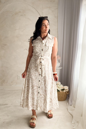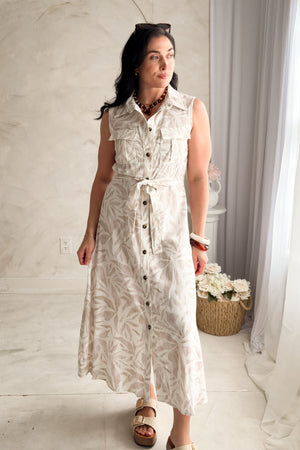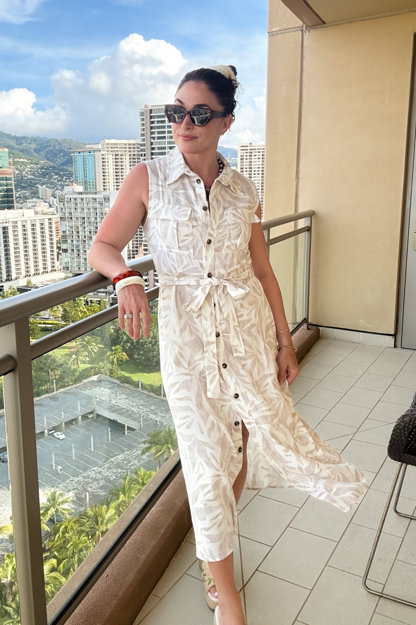 This neutral linen blend midi shirt dress is designed with a soft, breathable feel and an easy, flattering silhouette that works for everyday wear, vacation styling, and everything in between. The lightweight fabric drapes beautifully while keeping you cool—making it a go-to for warm days.