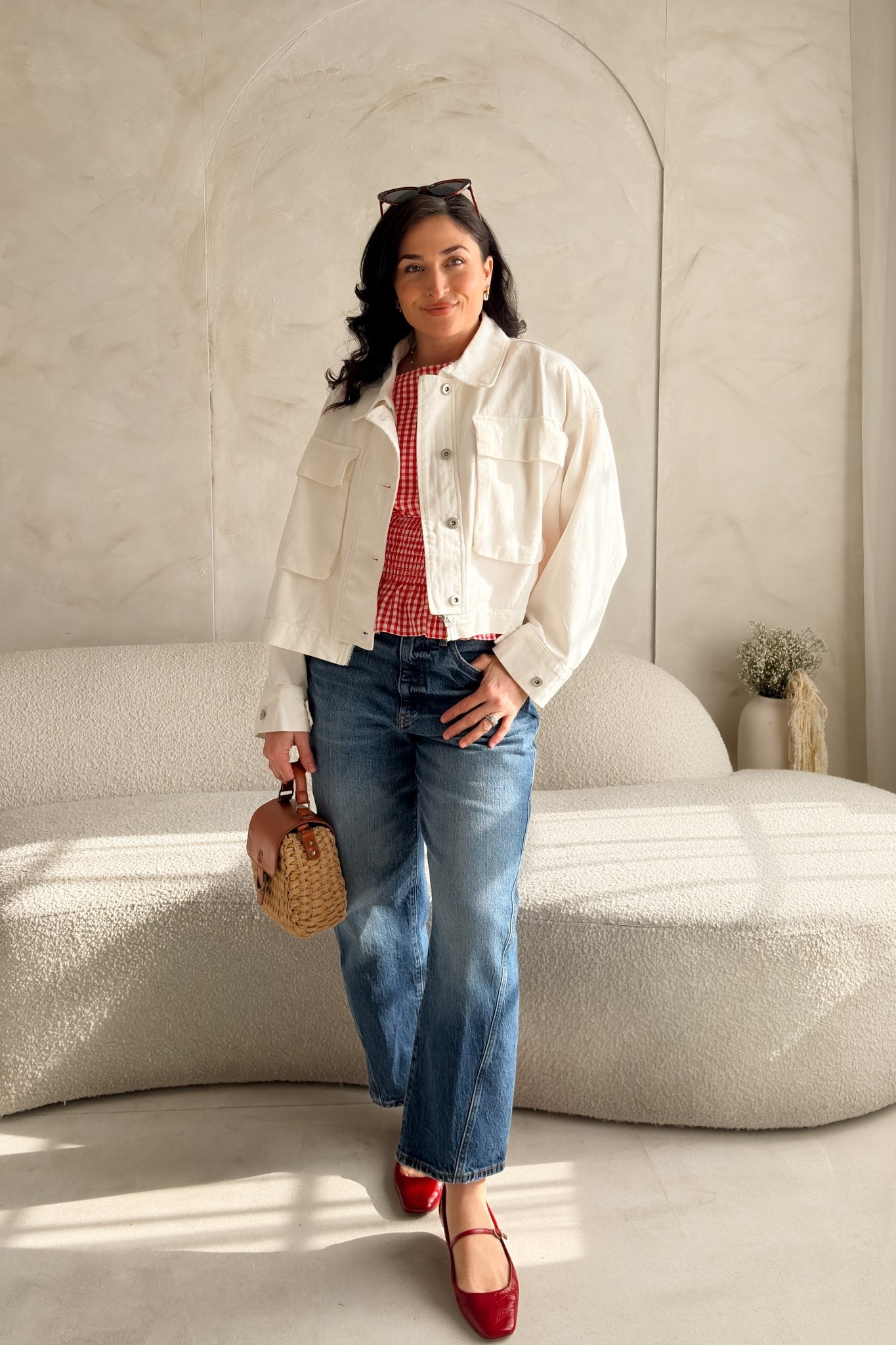 The classic utility details add interest without feeling heavy: a button-front closure, oversized chest pockets, and clean seaming throughout. Lightweight enough for spring and cool summer evenings, yet substantial enough to add structure to simple outfits, this jacket strikes the ideal balance between practical and elevated.