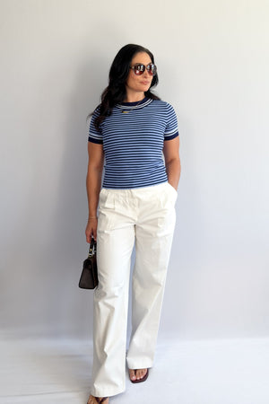 Women’s Striped Knit Sweater Tee — Navy & Sky